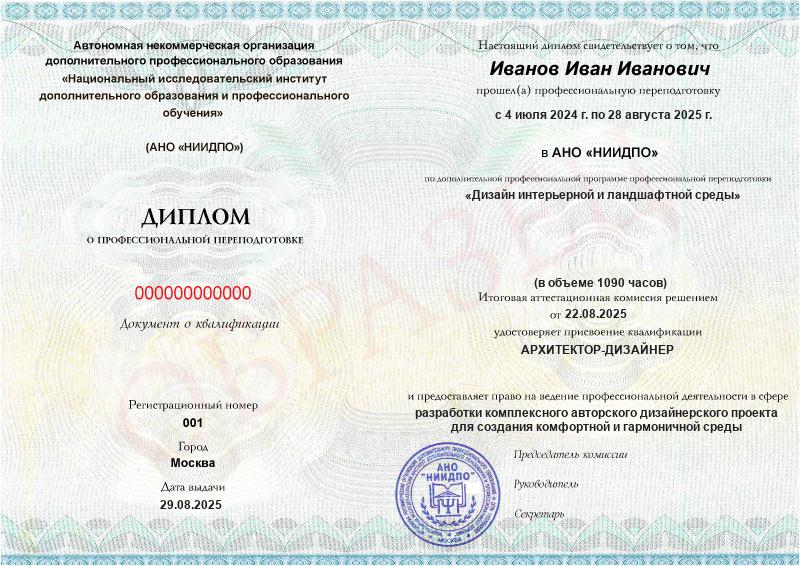 Да, документы оформляются на бланках с защитой от подделок, заполняются на русском языке, в них ставится печать АНО «НИИДПО».