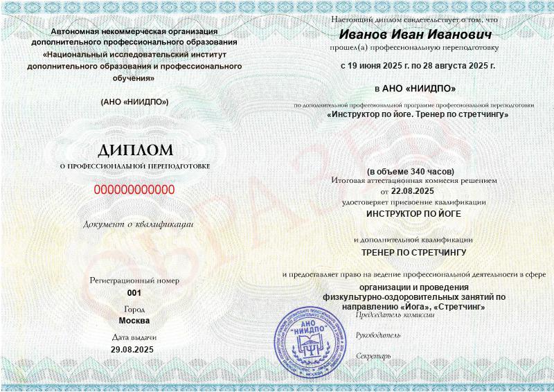 Да, документы оформляются на бланках с защитой от подделок, заполняются на русском языке, в них ставится печать АНО «НИИДПО».