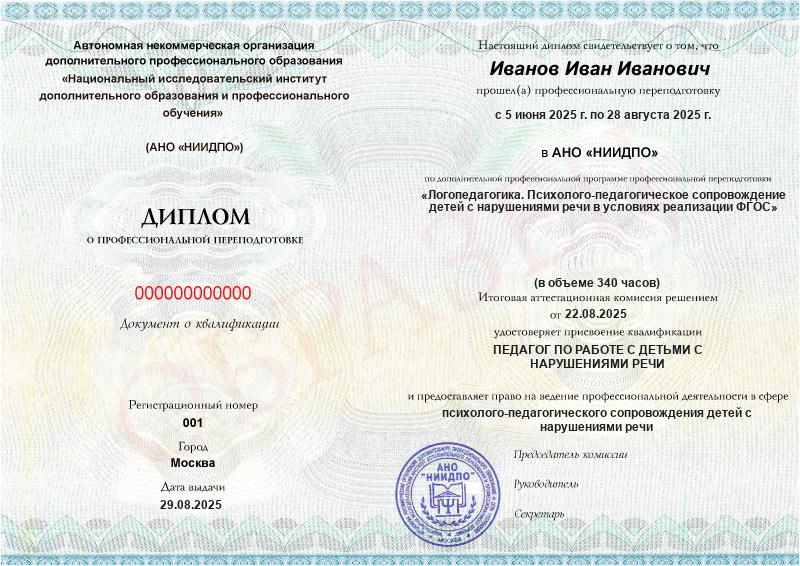 Студент, желающий поступить в АНО «НИИДПО», должен предоставить справку из образовательной организации. Независимо от срока окончания обучения по программе дополнительного образования, диплом о профпереподготовке выдаётся только после предъявления документа о получении среднего профессионального или высшего образования.