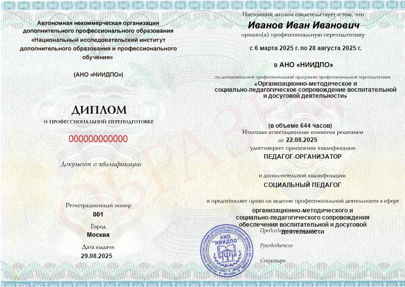 Обзор программы профессиональной переподготовки «Организационно-методическое и социально-педагогическое сопровождение воспитательной и досуговой деятельности» с присвоением квалификации «Педагог-организатор» с дополнительной квалификацией «Социальный педагог»