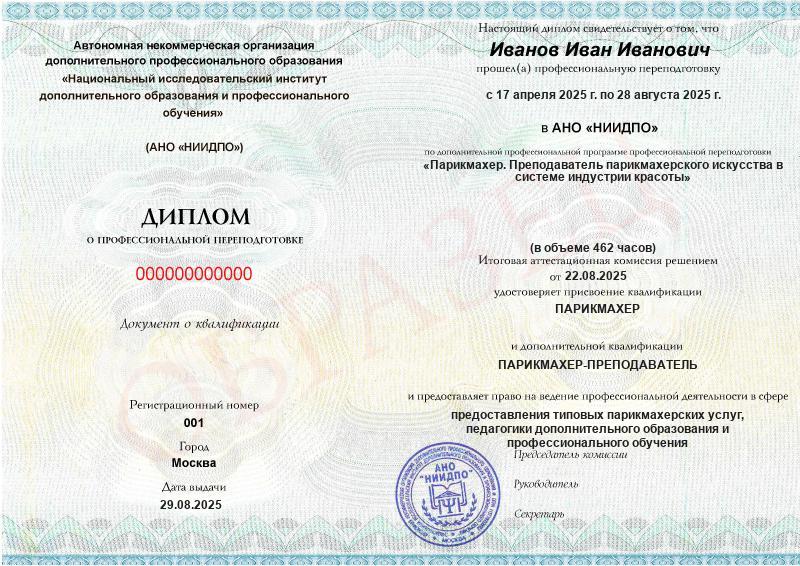 • 2 квалификации: Парикмахер + Парикмахер-преподаватель