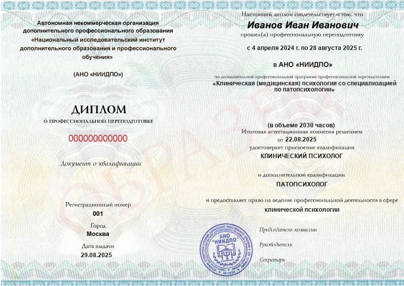 • 2 квалификации: Клинический психолог + Патопсихолог