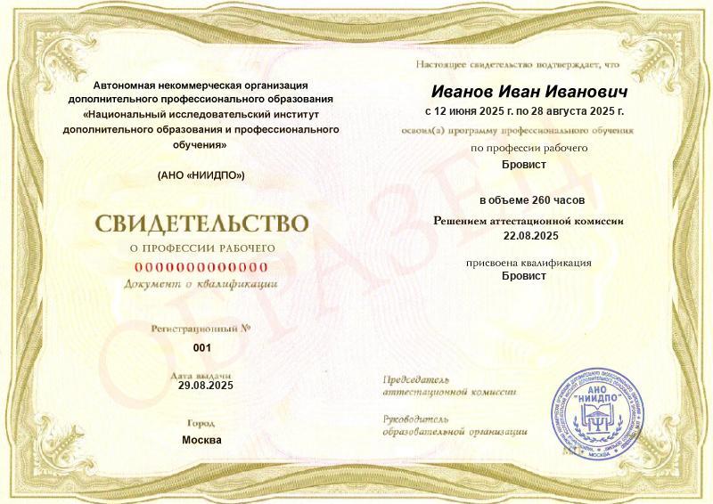 Для работы мастером не требуется специальное образование. Можно пройти краткосрочное обучение, где вас научат всем тонкостям этой профессии. В АНО «НИИДПО» программа длится всего 2,5 месяца.