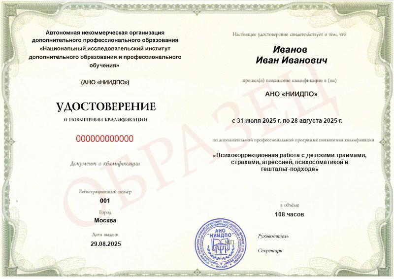 Психокоррекционная работа с детскими травмами, страхами, агрессией, психосоматикой в гештальт-подходе (108ч)