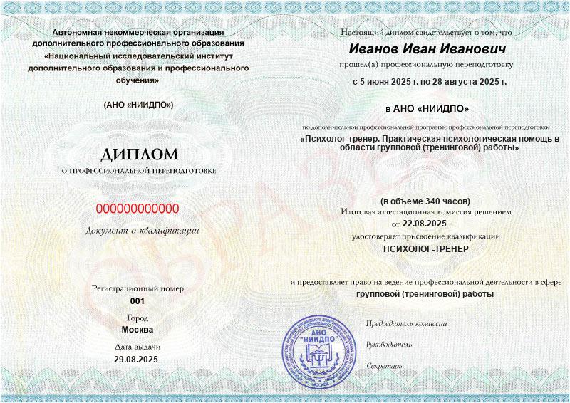 Психолог-тренер. Практическая психологическая помощь в области групповой (тренинговой) работы (340ч)