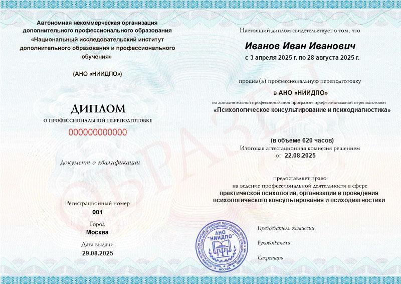 Диплом о профпереподготовке московского институтаДиплом действует на территории всей России и признается государственными и частными организациями