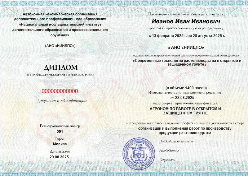 Получите квалификацию агронома на партнерской программе АНО «НИИДПО» и ФГБОУ ВО «НовГУ»: