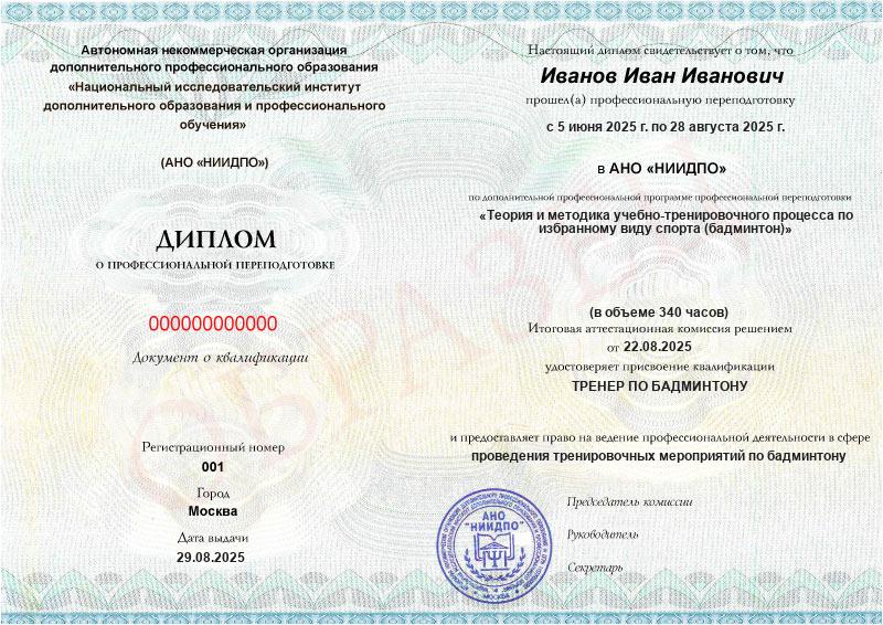 Обзор программы профессиональной переподготовки «Теория и методика учебно-тренировочного процесса по избранному виду спорта (бадминтон)» с присвоением квалификации «Тренер по бадминтону»
