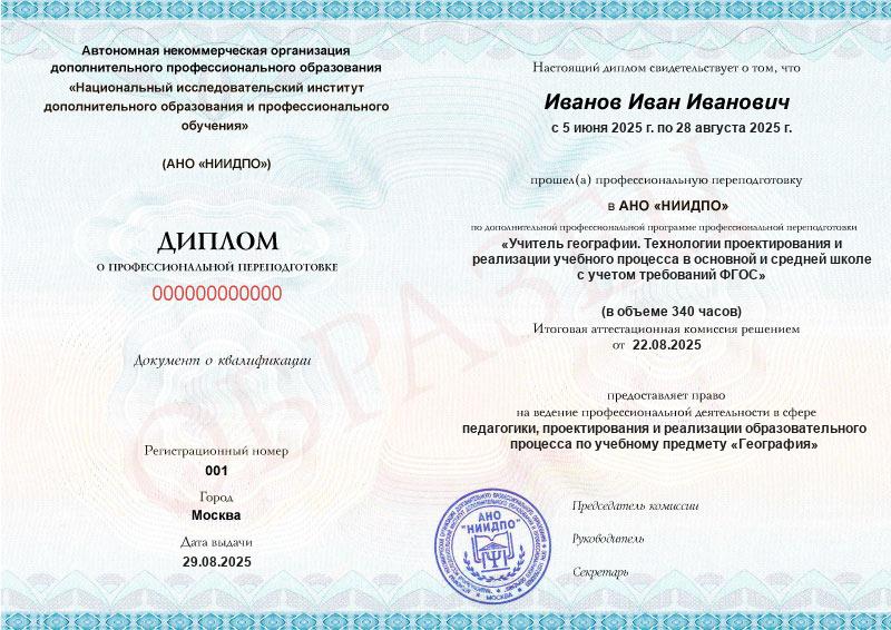 Диплом о профессиональной переподготовке московского института