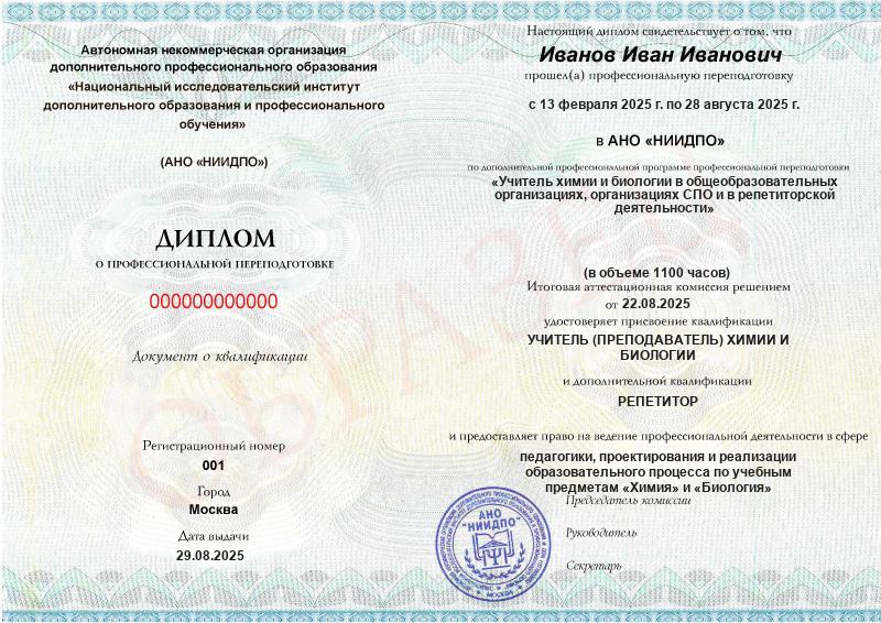 - 2 квалификации: УЧИТЕЛЬ (ПРЕПОДАВАТЕЛЬ) ХИМИИ И БИОЛОГИИ + РЕПЕТИТОР